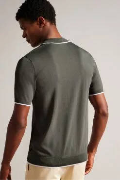 Ted Baker Green Stortfo Short Sleeved Rayon Open Neck Polo Shirt