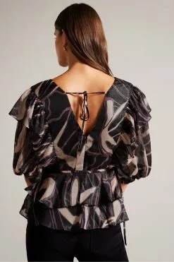 Ted Baker Josiaa Black Square Neck Military Detail Midi Dress