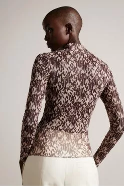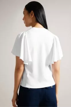 Ted Baker Nude-Pink Bertei Ruffle Blouse With Metal Ball Trim