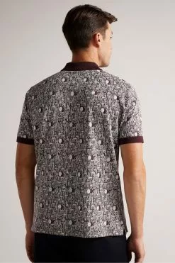 Ted Baker Regular Maroon Red Taigaa Striped Panelled Polo Shirt
